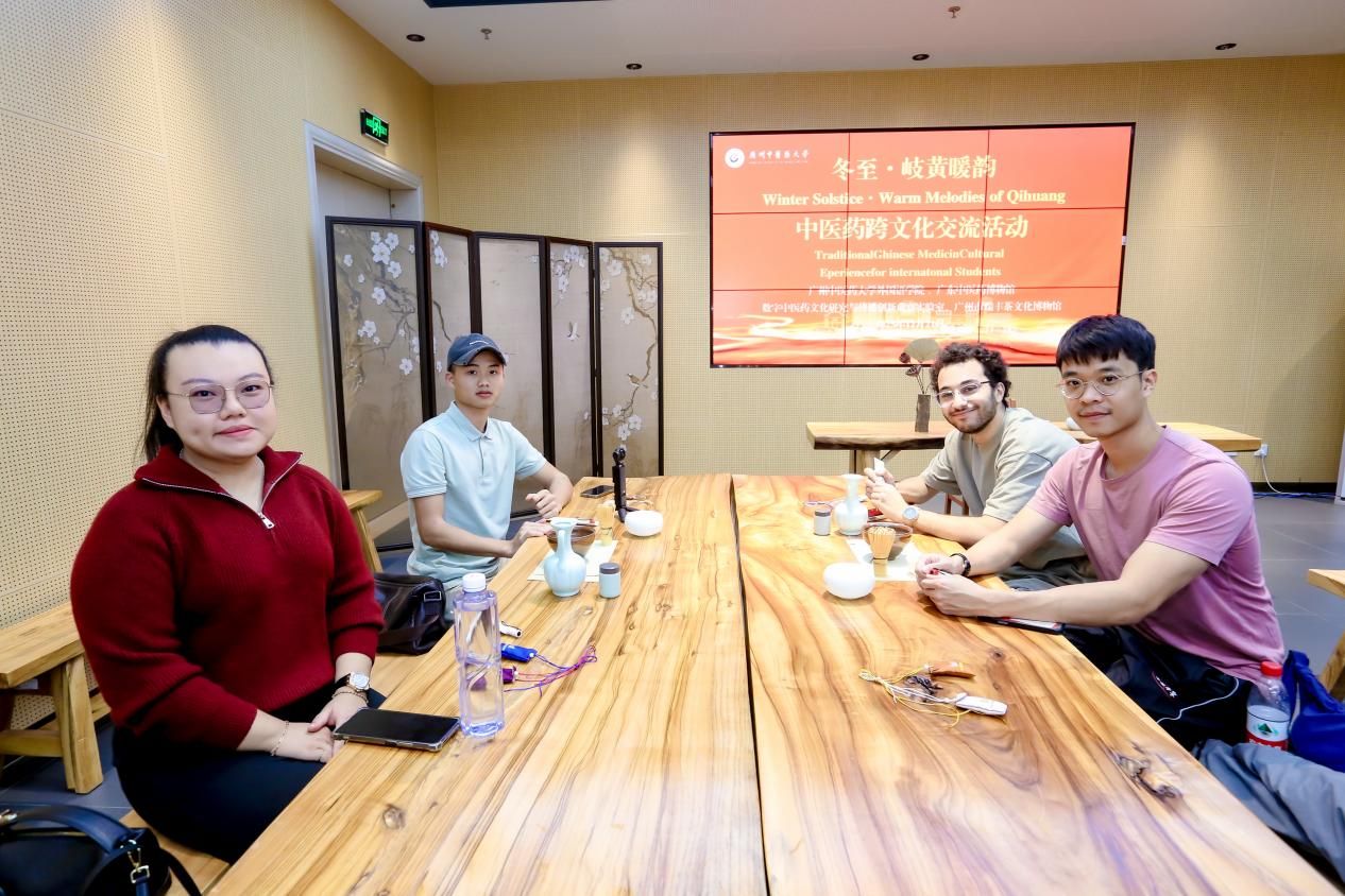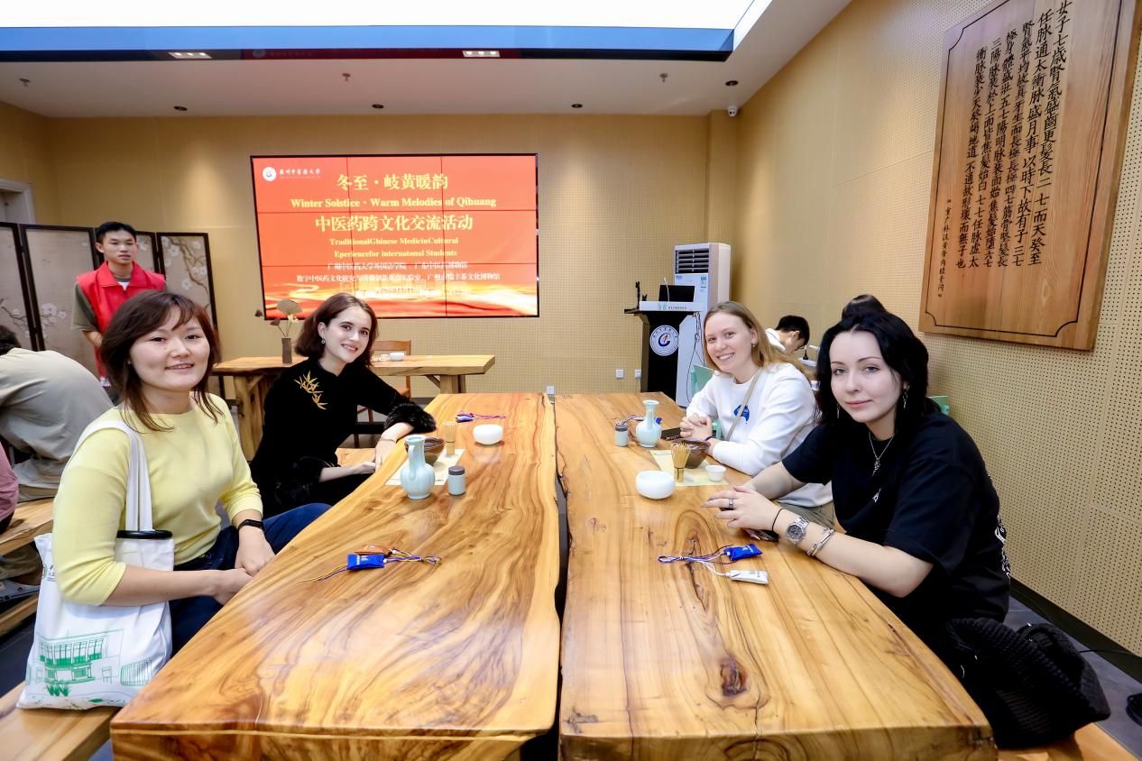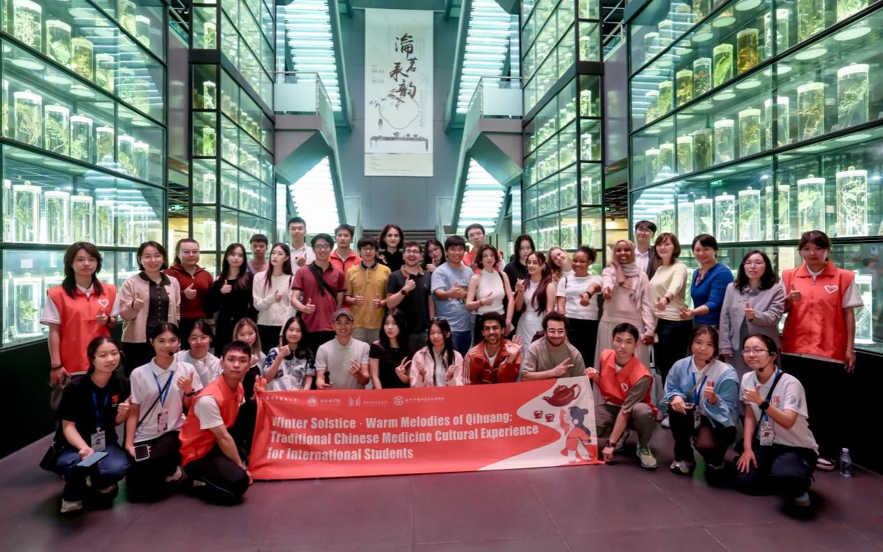 2025年12月21日冬至,由广州中医药大学外国语学院(广州中医药大学中医药翻译与国际传播中心)、广东中医药博物馆、数字中医药文化研究与传播创新重点实验室及广州市瑞丰茶文化博物馆联合主办的“冬至·岐黄暖韵”中医药跨文化交流活动在广东中医药博物馆成功举办。来自华南理工大学与华南师范大学的24名国际学生(分别来自全球15个国家),与广州中医药大学外国语学院英语(中医药国际传播)专业的学生齐聚一堂,共同参与了茶艺体验、中医药文化探访等丰富多彩的跨文化交流活动。