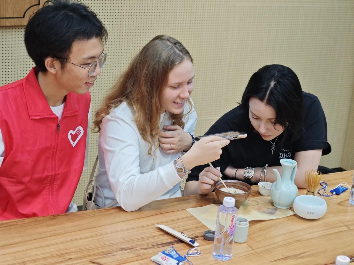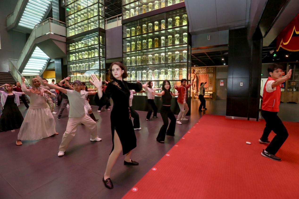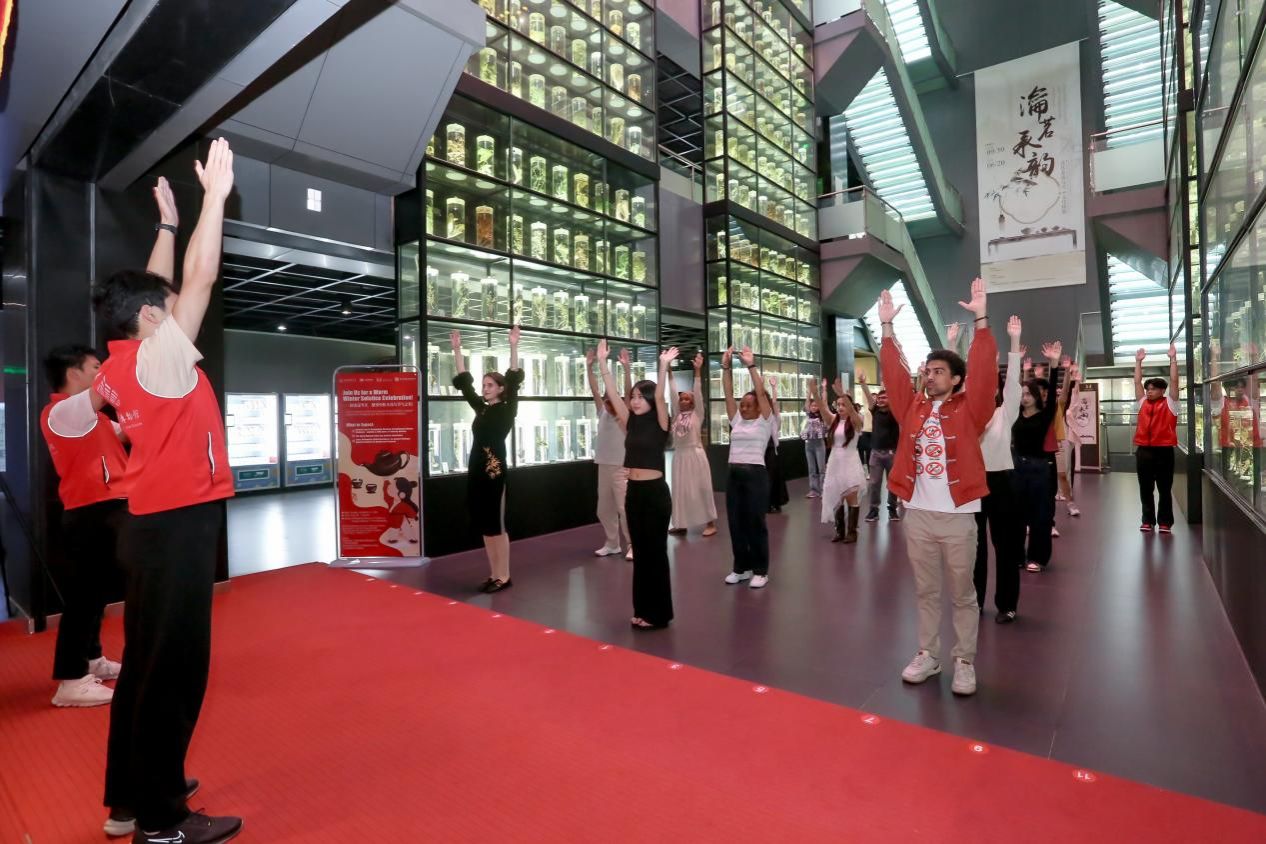 来自华南师范大学的俄罗斯留学生金丽雅则表示,每个环节都令她印象深刻:点茶技巧的难度超乎想象,但在茶沫上作画的过程充满趣味;博物馆的参观让她对中医历史脉络有了全新认识;而八段锦练习则为她久坐的学习生活提供了有效的放松方式。她还透露,家人对刮痧、推拿等中医疗法颇感兴趣,自己也会时常带一些简单的中药材回家,与家人分享这份独特的文化体验。