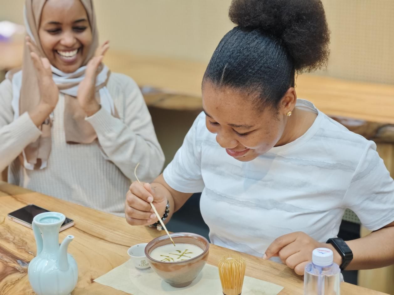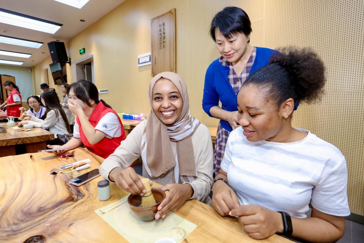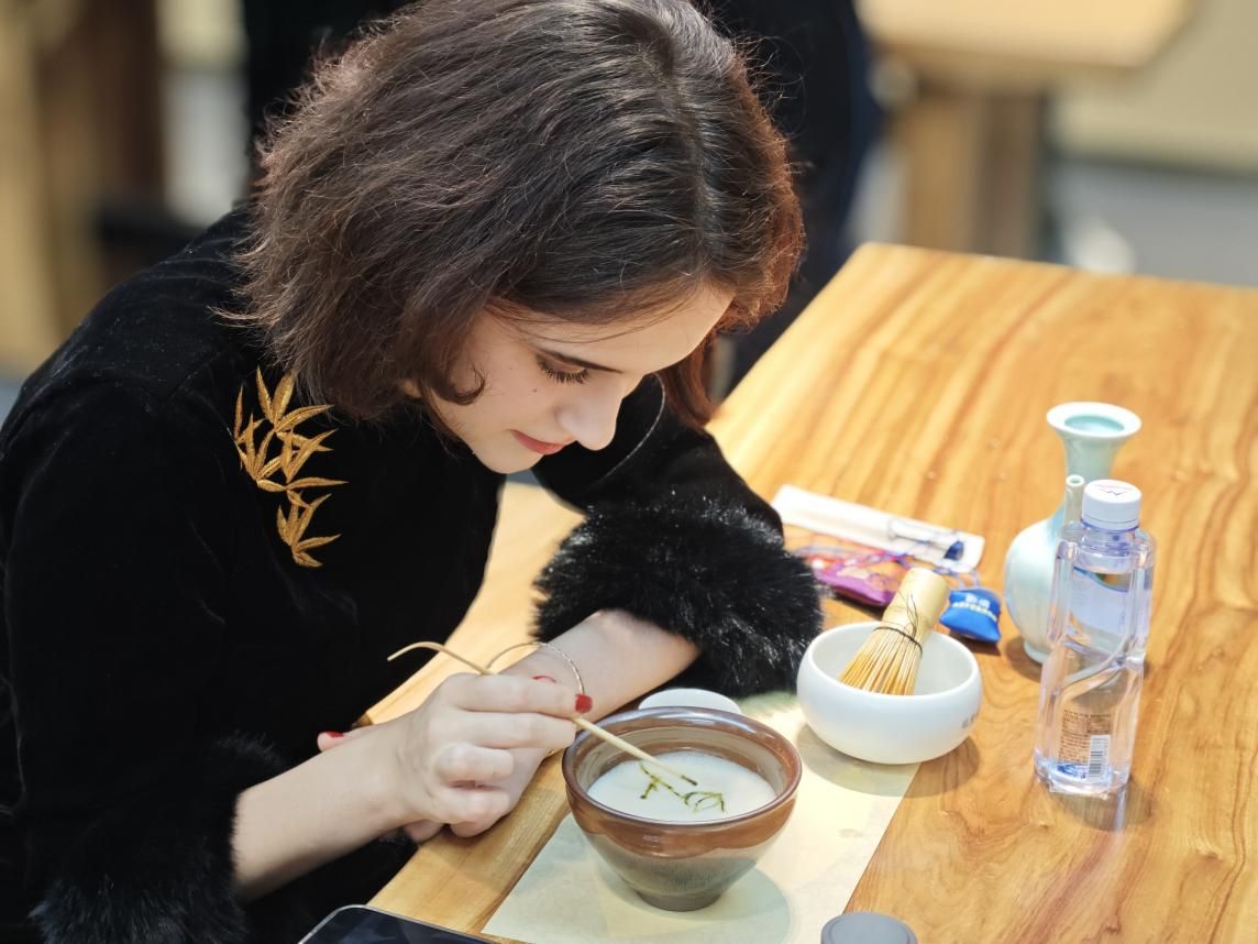 来自华南师范大学的俄罗斯留学生金丽雅则表示,每个环节都令她印象深刻:点茶技巧的难度超乎想象,但在茶沫上作画的过程充满趣味;博物馆的参观让她对中医历史脉络有了全新认识;而八段锦练习则为她久坐的学习生活提供了有效的放松方式。她还透露,家人对刮痧、推拿等中医疗法颇感兴趣,自己也会时常带一些简单的中药材回家,与家人分享这份独特的文化体验。