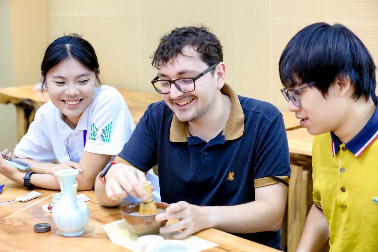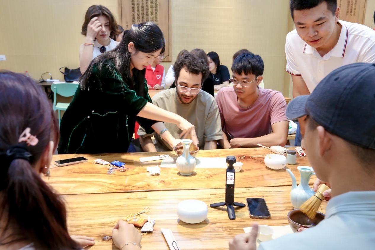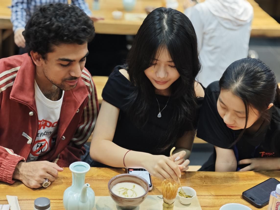 在最后的自由交流与采访环节,多位国际学生分享了他们的体验与感悟。来自华南理工大学的巴西留学生帅恩哲对点茶环节情有独钟,他赞叹中国早在宋朝就发展出如此精妙的茶艺术,并表示希望未来有机会能进一步接触和辨识各类中药材。
